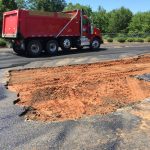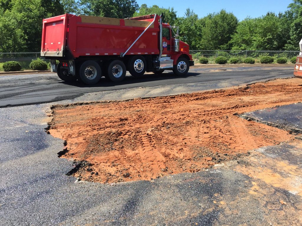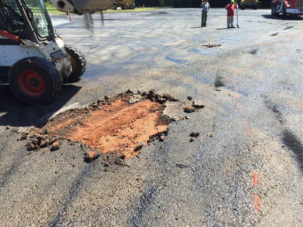 Patching is the process of filling potholes or excavated areas in the asphalt pavement. Quick repair of potholes or other pavement disintegration helps control further deterioration and expensive repair of the pavement. Without timely patching, water can enter the subgrade and cause larger and more serious pavement failures.