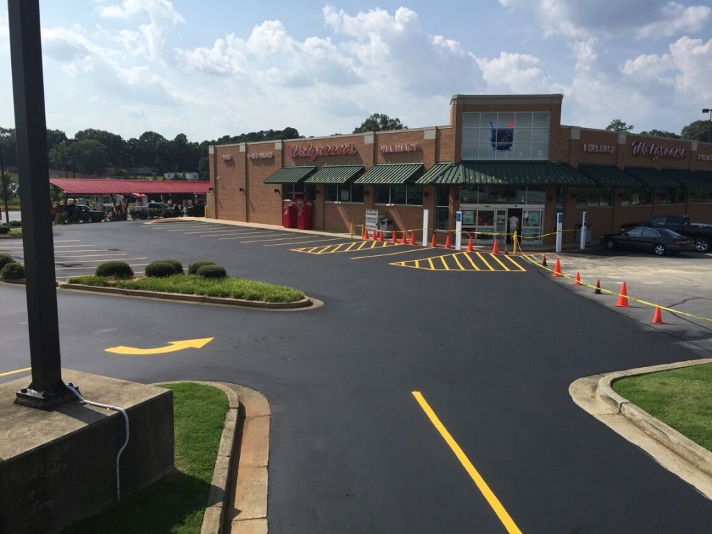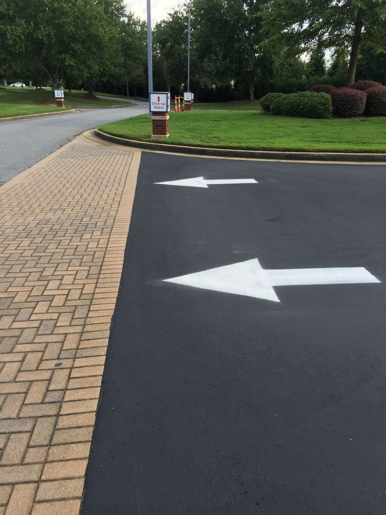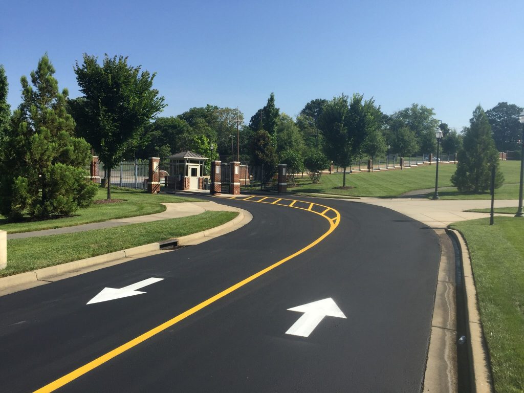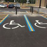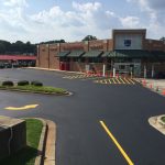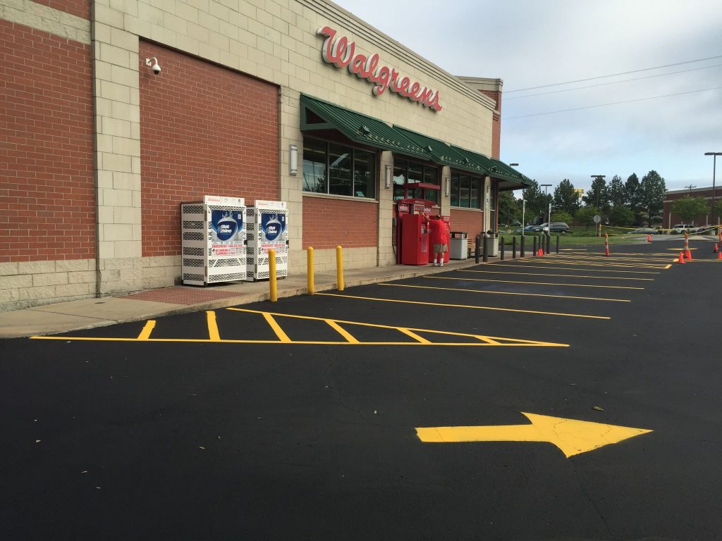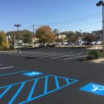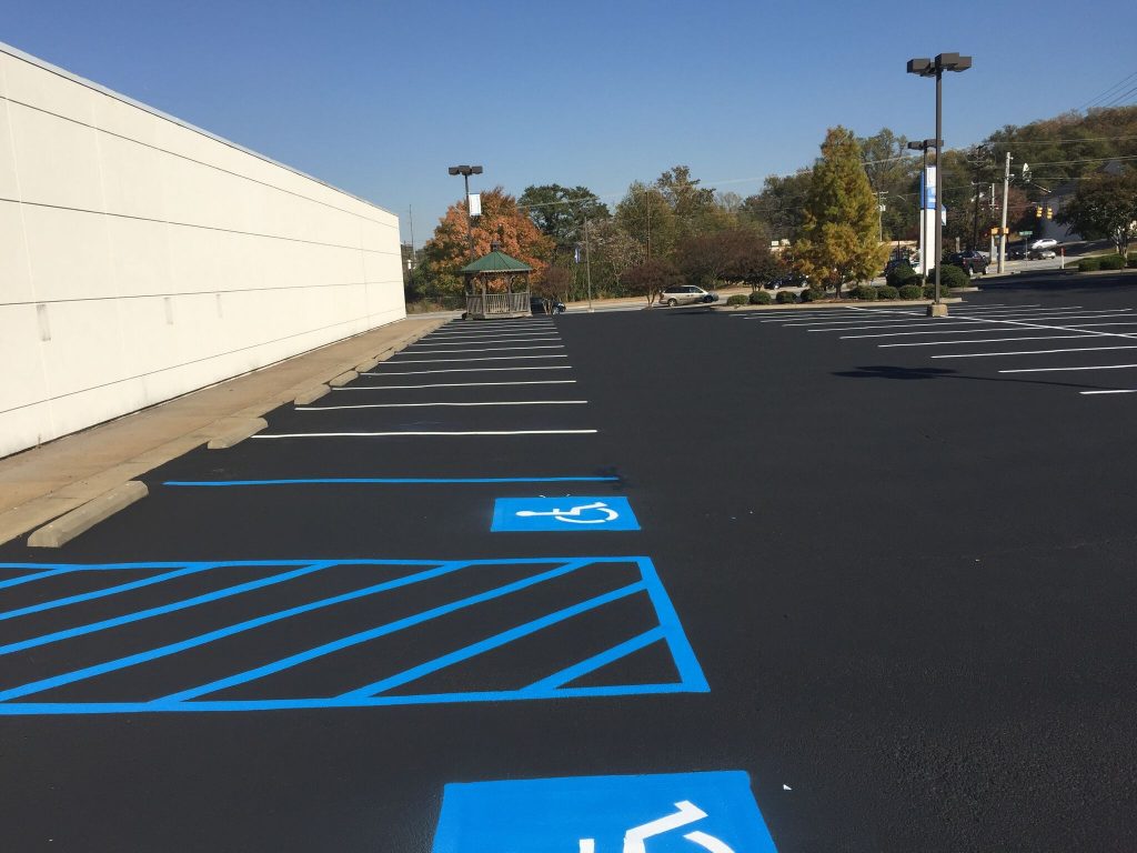Professional striping assists your visitors in the safe use of your parking lot. It directs traffic to the proper route of entrance and exit, allowable areas to park, loading zones, crosswalks, and defines drive aisles that are wide enough to avoid accidents with cars and pedestrians. Properly designed parking spaces also maximize the number of cars you can safely accommodate.
